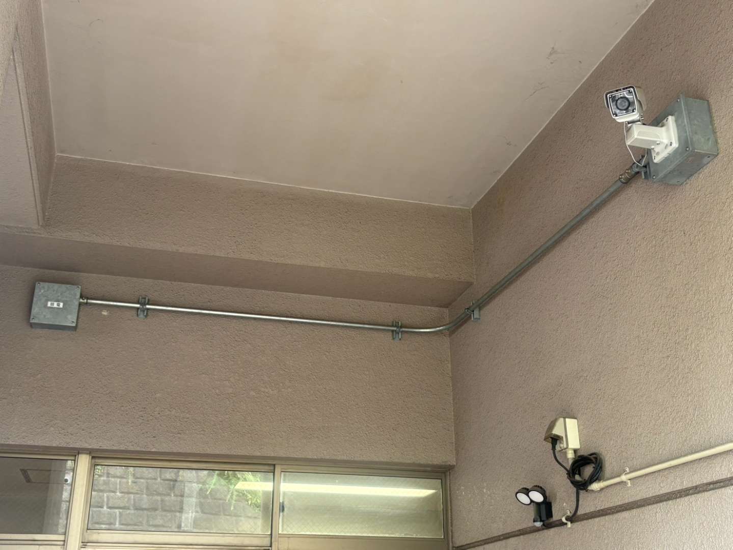 この度の防犯カメラ設置工事では、施設の裏口からの人の出入りを確認できるよう、高画質の防犯カメラを設置いたしました。夜間や悪天候時でも鮮明な映像を記録できる機種を選定し、施設利用者の安全とセキュリティ強化を実現します。